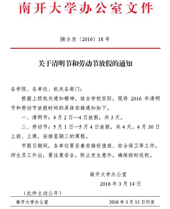 关于清明节和劳动节放假的通知