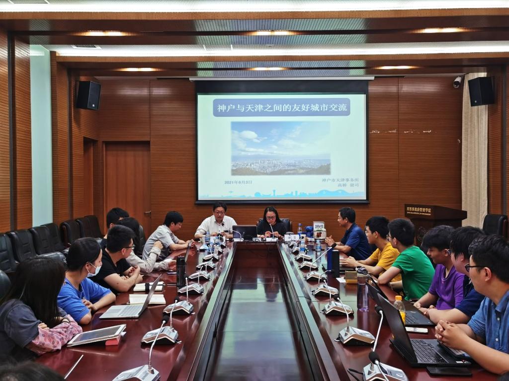 高桥健司所长通过视频、幻灯片、实物展示等形式生动介绍了神户市的历史沿革、地域风光、乡俗民情与主要产业等内容,并结合我院师生的研究方向对日本地方自治的法律制度框架、基本结构、府际关系等进行了详细的解读。他指出,天津市与神户市是在周恩来总理的亲自关怀下,于1973年6月24日正式结为友好城市,这是中日之间的首对友好城市,也是新中国成立后结成的第一对中外友好城市。高桥先生系统讲述了结为友好城市的近五十年来,双方在野生动物饲养、医疗器械研发、港口运营管理与新冠疫情互助等多方面所开展的卓有成效的合作交流活动。他表示,天津与神户之间、中日之间文化相近、往来密切,具有长期的友好交流历史,希望未来能进一步加强双方的经济文化合作,共促两市与两国的蓬勃发展。