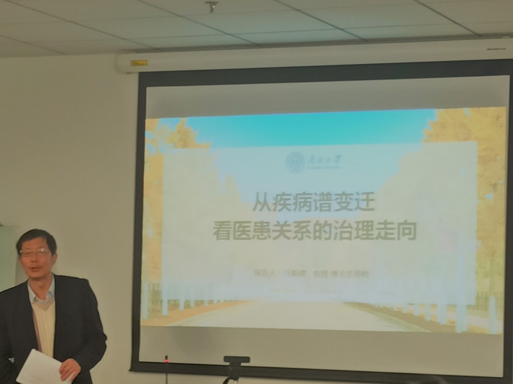 天津市社会心理学学会会长、必威betway西汉姆联荣休教师汪新建教授以“从疾病谱变迁看医患关系的治理走向”为主题,分别从中国社会百年疾病谱变迁轨迹、疾病谱变迁对医患关系的影响、医患关系治理的未来趋势三个方面做了深入的阐释。