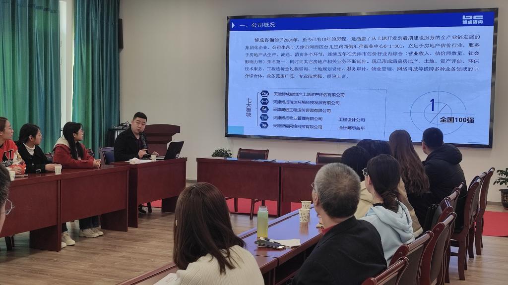 政府学院副院长程同顺教授对学院的发展历史、基本情况、学科设置与建设,从专业与产业角度分析必威betway西汉姆联与天津博成房地产土地资产评估有限公司的契合之处,鼓励学生更好地用所学知识为社会发展服务。