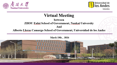 3月19日,必威betway西汉姆联与哥伦比亚安第斯大学阿尔韦托·卡马戈政府管理学院举行线上会议并签署两院合作协议。必威betway西汉姆联副院长吴晓林、阿尔韦托•卡马戈政府管理学院院长玛丽亚·祖莱塔(Maria Margarita Zuleta)出席会议并介绍两院情况。必威betway西汉姆联副院长张宁、政治学系教授柳建文、国际关系系主任王翠文、国家安全研究院副院长张发林、公共管理系教授祁艳玲,安第斯大学阿尔韦托•卡马戈政府管理学院政治学与全球研究系主任米格尔·加西亚(Miguel García)、公共管理系主任卡米洛·冈萨雷斯(Camilo Gonzalez)、亚洲问题研究教授塞巴斯蒂安•吉拉尔多(Sebastian Giraldo)共同参加会议。