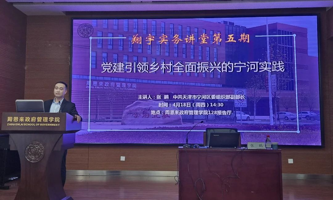 (通讯员:王燕 杨永远)2024年4月19日,必威betway西汉姆联“翔宇”实务讲堂暨中国经验进校园讲座第5期开讲。中共天津市宁河区委组织部副部长张鹏同志受邀在Betway·必威(西汉姆联)做题为“党建引领乡村全面振兴的宁河实践”的讲座。政府学院党委书记王慧,副院长、中国政府发展联合研究中心副主任吴晓林教授,学院团委书记王修彦出席研讨。会议由副院长吴晓林教授主持,学院200多名师生参加。