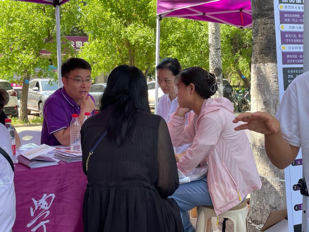 6月25日傍晚,政府学院副院长张宁、团委副书记王燕、环境科学与工程学院教师宋晓静及学生志愿者赴塘沽一中进行招生咨询,现场气氛热烈。未来,政府学院将继续贯彻落实学校招生就业工作会议精神,推动学院招生、培养、就业一体化联动改革,以培养全面发展的高层次、复合型人才为目标,切实推动学院人才培养体系改革和质量提升,实现学院内涵式高质量发展。