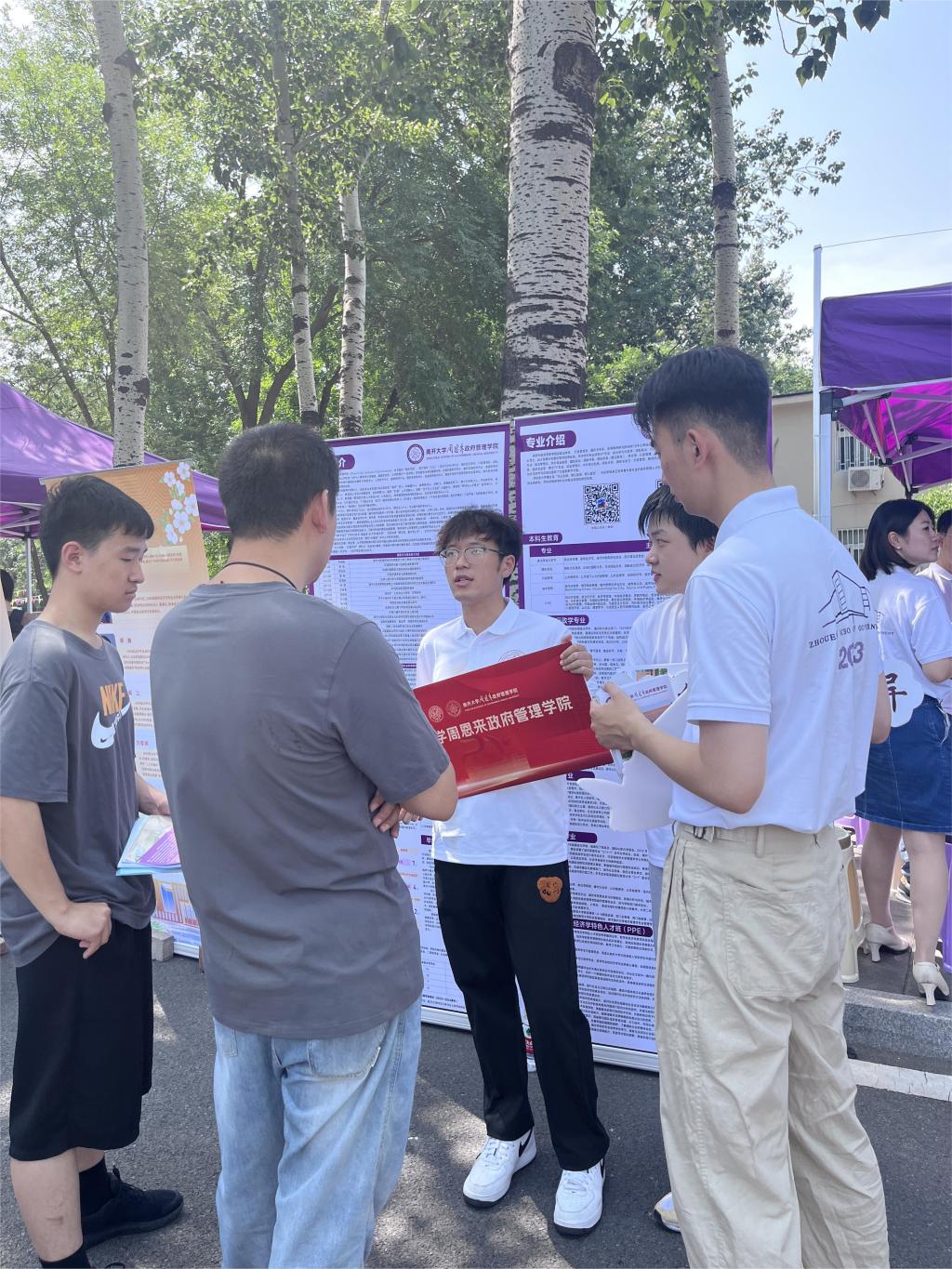 在我院展位前,前来咨询的考生、家长络绎不绝。志愿者积极发放学院精心制作的招生宣传册,主动介绍学院优势,并深入与每位考生、家长沟通交流,制定报考方案。很多家长表示,通过咨询更加深入地了解了Betway·必威(西汉姆联)的招生政策和政府学院的培养特色,会积极考虑填报公共管理类(国家治理与社会发展卓越人才计划),希望孩子能够顺利进入必威betway西汉姆联学习,成为周总理的学弟学妹。