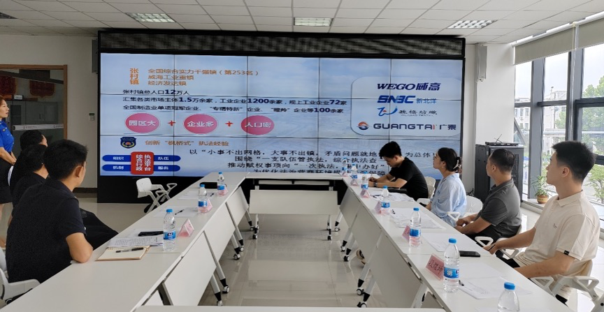 在威海市,课题组先赴威海市委、市政府调研政府职责体系优化、政务服务热线的相关实践经验。课题组与威海市委编办、市12345政务服务热线中心等负责同志就《威海市职责边界一本通》《部门职责分工协商协调办法》等政府职责体系优化成果的发展历程与进展等方面进行了座谈交流。重点关注在市域社会治理中如何协调“关键小事”与“民生大事”,并以此为支点理顺部门职责边界、优化政府职责体系的过程。