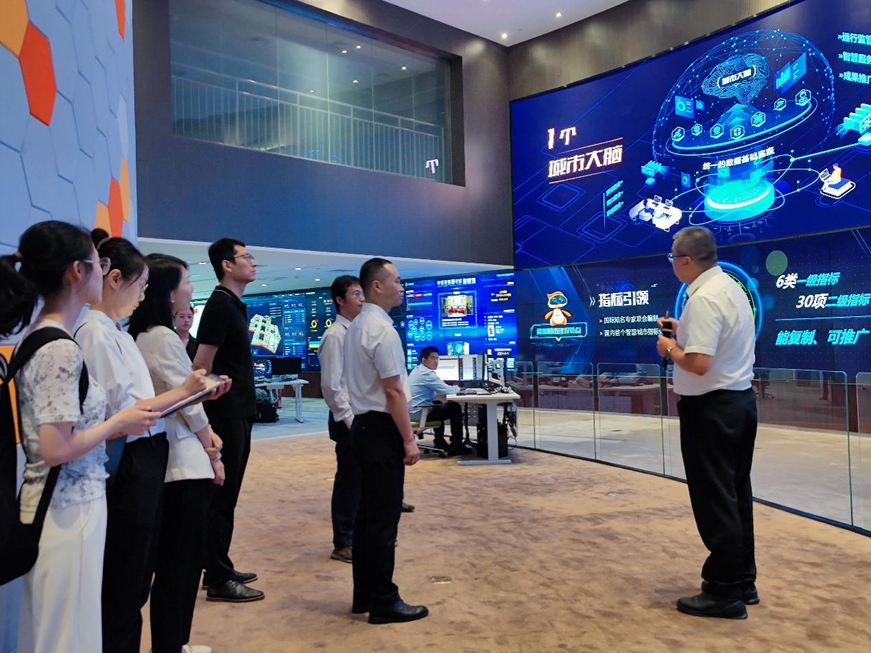 在签约仪式之前,必威betway西汉姆联师生首先来到中新生态城的“城市大脑”调研参观,中新天津生态城数据局局长王喆向详细介绍了“城市大脑”的基本组成、3大基础平台和17个智慧模块。中新天津生态城“城市大脑”通过设立指标引领,将资源、职能、能力等全要素集成整合,开发导向产品,最终服务于具体应用。