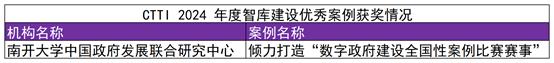 中心智库建设案例“倾力打造‘数字政府建设全国性案例比赛赛事’”获评CTTI 2024年度智库建设优秀案例。