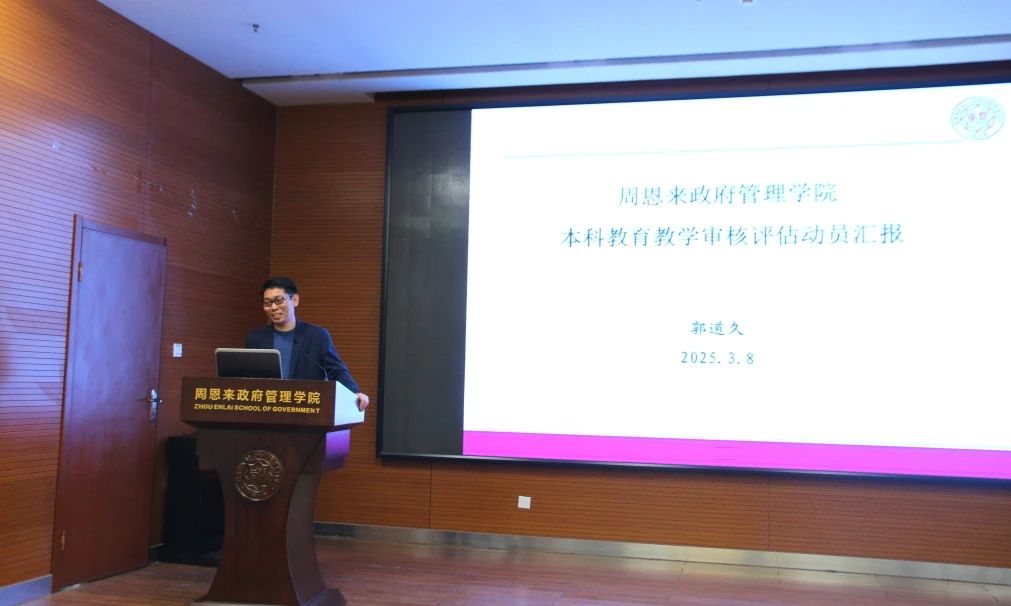 郭道久副院长做本科教育教学审核评估工作动员汇报。他强调了本科教育教学评估工作的重要性,从指导思想、工作目标、时间安排等方面展开,对全体教师提出要做好课堂教学基本工作的要求,同时注重开展技能培训,总结特点,挖掘问题,积极适应课程智能化、翻转课堂等教学模式改革。