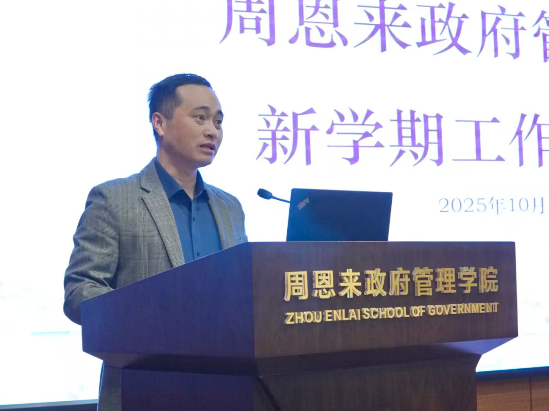 吴晓林院长总结学院重点工作进展及部署新学期工作安排。他指出,上半年学院在师资队伍建设、教学科研和学科建设、国际交流合作等方面都取得了显著成效,为学院未来的发展奠定了坚实基础。新学期,学院要持续做好校内巡视整改工作、继续抓好人才引育工作、抓严抓实教学工作、全力推动学科创新发展、深化拓展国际学术交流,全体教职工要共同努力,推动学院发展再创佳绩。