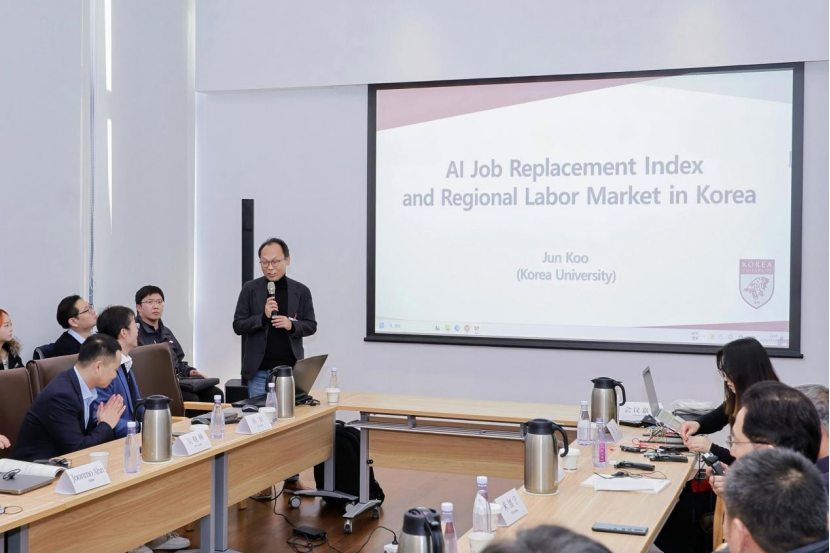 韩国高丽大学政治与经济学院前任院长、教授古俊作题为《韩国的AI就业替代指数和区域劳动力市场》的主旨发言,报告中通过数据建模,揭示了AI对不同行业、不同区域就业市场的影响差异。研究发现,韩国旅游业、零售业等服务业及钢铁、汽车制造业受AI替代风险较高,而康养行业抗替代能力较强;他强调,区域产业多样性是降低AI就业冲击的关键,政府需为受技术变革影响的群体提供必要支持。