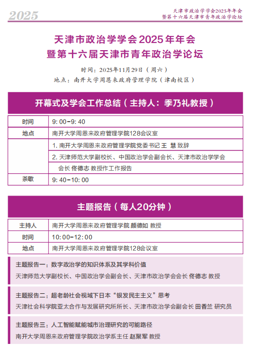 天津市政治学学会2025年年会暨第十六届天津市青年政治学论坛