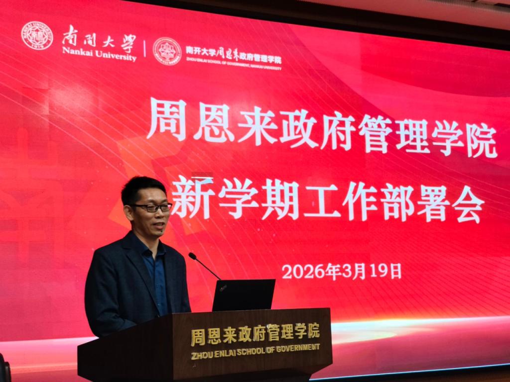 吴晓林院长首先介绍了新近入职的同事,而后以数据为支撑,简要总结学院2025年度工作成绩,围绕新学期任务与“十五五”规划,明确了总体发展目标,以及科研服务国家战略、学术创新、平台建设与学科生态的“四个突破”工作思路。他强调,全院要坚守人才培养初心,坚持正确教育观、育人观,杜绝教学中的形式主义,以真心真情做好育人工作;科研上要主动对接国家战略需求,加快人才队伍建设,凝聚发展合力。