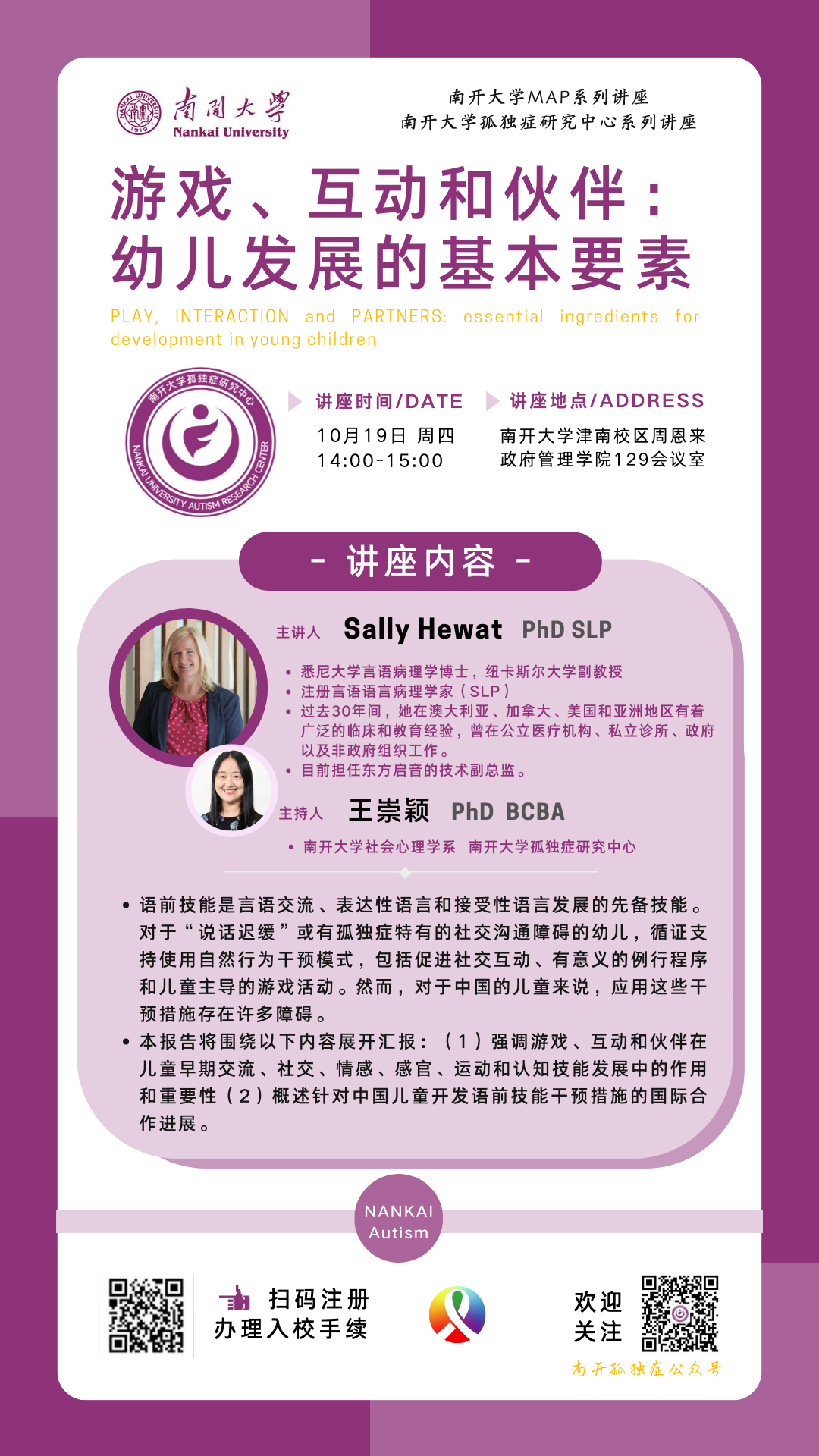 主持人: 王崇颖 必威betway西汉姆联 Betway·必威(西汉姆联)孤独症研究中心