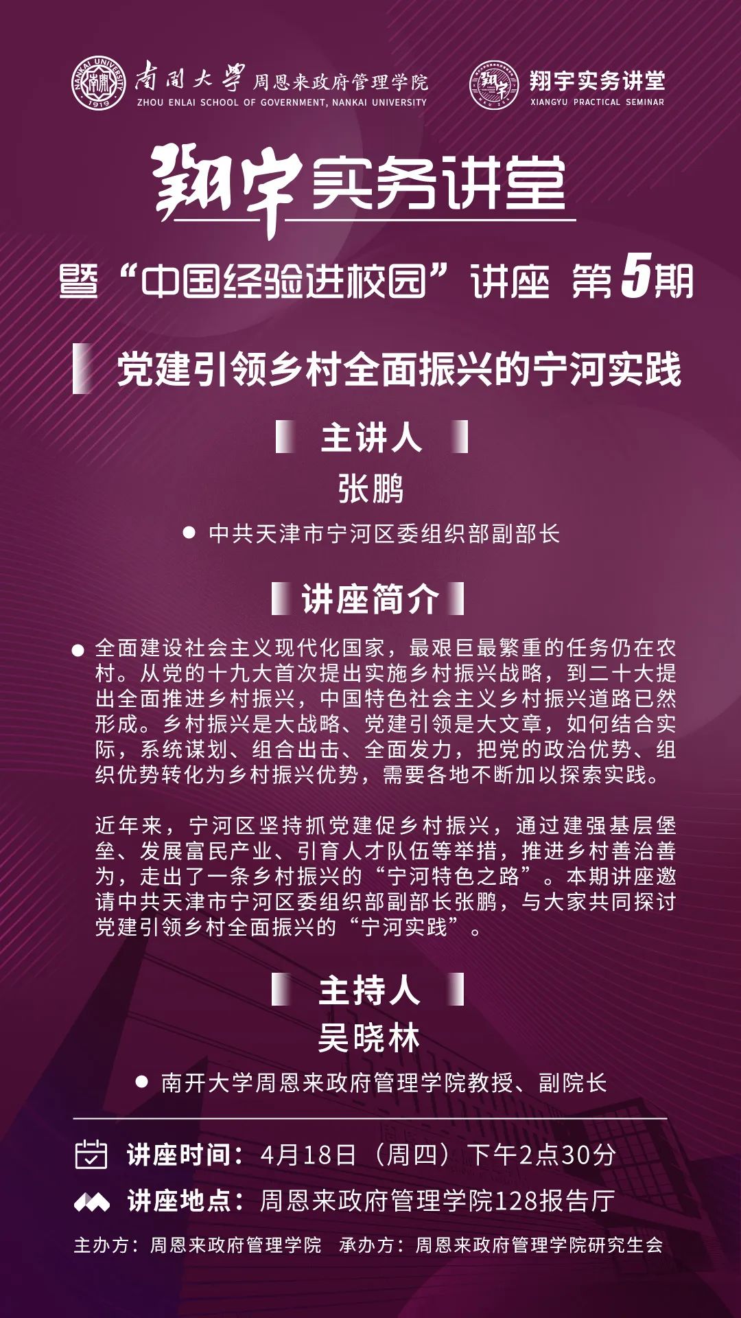 建院二十周年系列讲座 | 南开“翔宇”实务讲堂第5期:党建引领乡村全面振兴的宁河实践