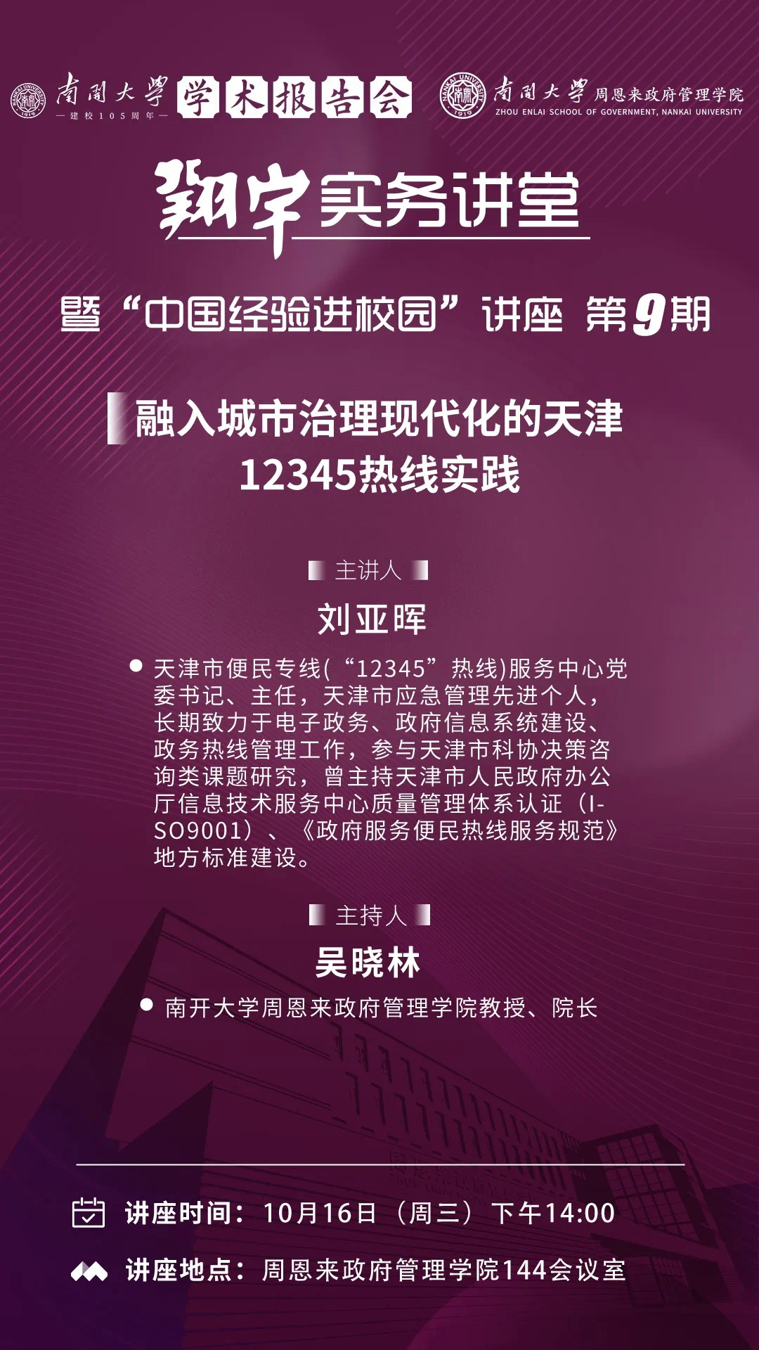 Betway·必威(西汉姆联)建校105周年学术报告会暨“翔宇”实务讲堂|刘亚晖:融入城市治理现代化的天津12345热线实践