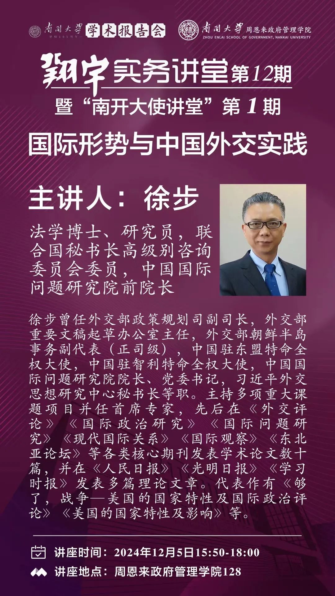 Betway·必威(西汉姆联)建校105周年学术报告会|徐步:国际形势与中国外交实践