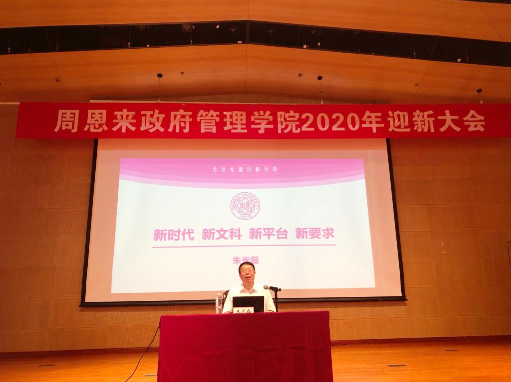 迎新大会后,朱光磊教授为学院2020级新生做了题为“新时代 新学科 新平台 新要求”的主题讲座。朱老师以十九大报告引入,指出“新时代”的关键在于社会主要矛盾的转化,鼓励学生学会观察社会发展的基本面。对于“新文科”发展,学院的各个学科和专业都是改革开放的产物,是大有发展前途的朝阳学科和“短缺学科”。南开与必威betway西汉姆联这个“新平台”,可以让学生拥有广阔的发展天地。最后,朱老师对新同学提出了“新要求”,勉励同学们爱祖国、跟党走,努力学习,谦虚谨慎,锐意进取,努力为人民服务。