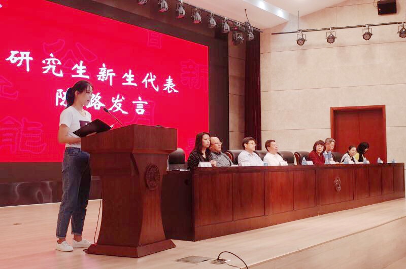 迎新大会在雄壮的《义勇军进行曲》中拉开帷幕。院长孙涛教授在致辞中介绍了学院今年新生的招录情况以及近年来学科发展、课程建设、人才培养等方面取得的成果,同时勉励新生要有开放的胸怀、开拓的思维和务实的态度,努力传承“允公允能,日新月异”的校训,将自己塑造成扎根中国、服务中国的人才。