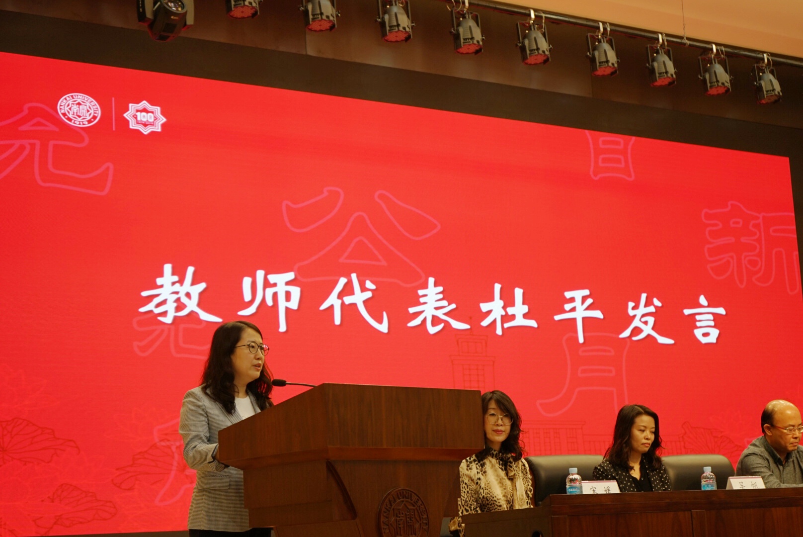 在校生代表2018级本科生付昱、新生代表2020级本科生张奕灿及2020级博士研究生陈璐依次发言,他们立志牢记习近平总书记的嘱托,把小我融入大我,用青春奉献祖国,做南开新百年的生力军。