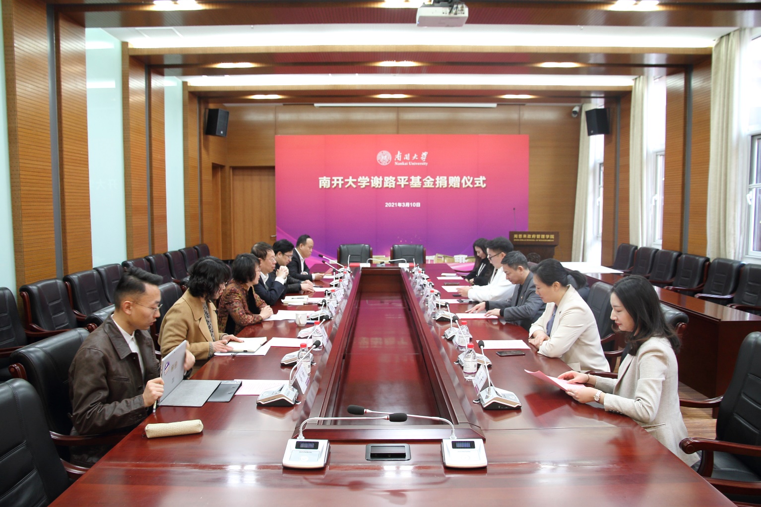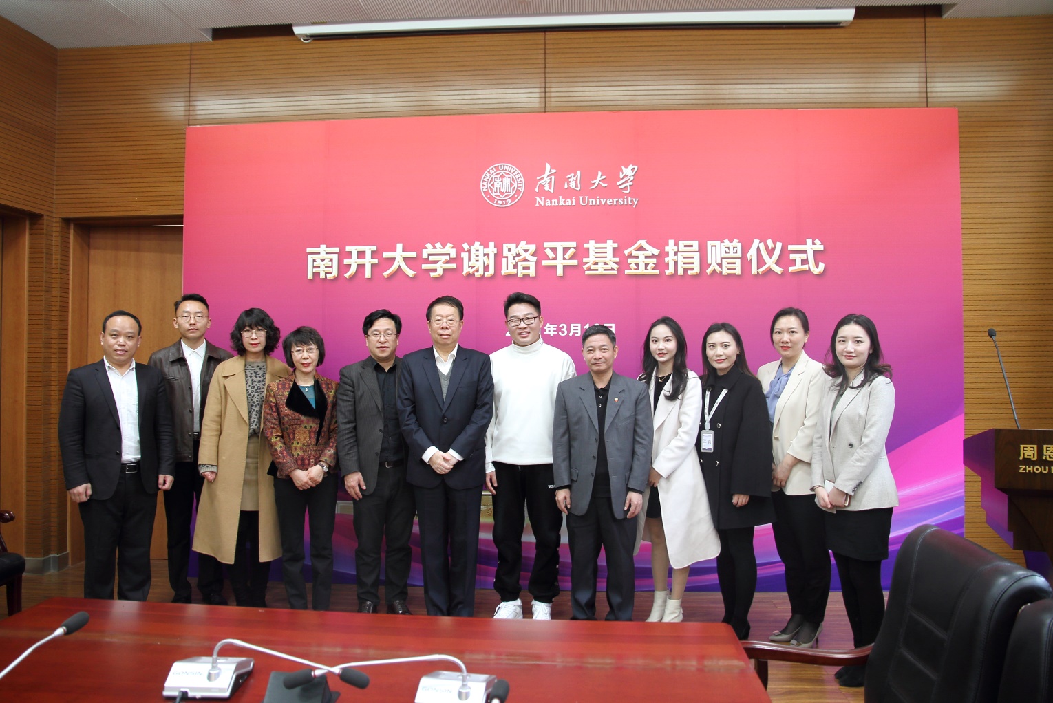 朱光磊代表学校向谢路平的慷慨捐赠表示衷心感谢。他说,南开校友与母校有着天然的深厚情谊,谢路平校友的捐赠之举,是心怀母校南开、恪守“公能”精神的切实表现。朱光磊鼓励与会师生继续将学院各项工作向前推进,争创更好业绩,取得更大发展,不负校友们的殷切期望。